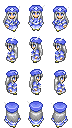 First Seed Material さん素材:全体的にツクール2000RTPより落ち着いた色合い。2.5頭身くらい、斜め上からの描写、幅少し広め(素数で1ピクセル右より)、アニメーション多い、目元はマザーとか昔のドラクエのような感じで点。